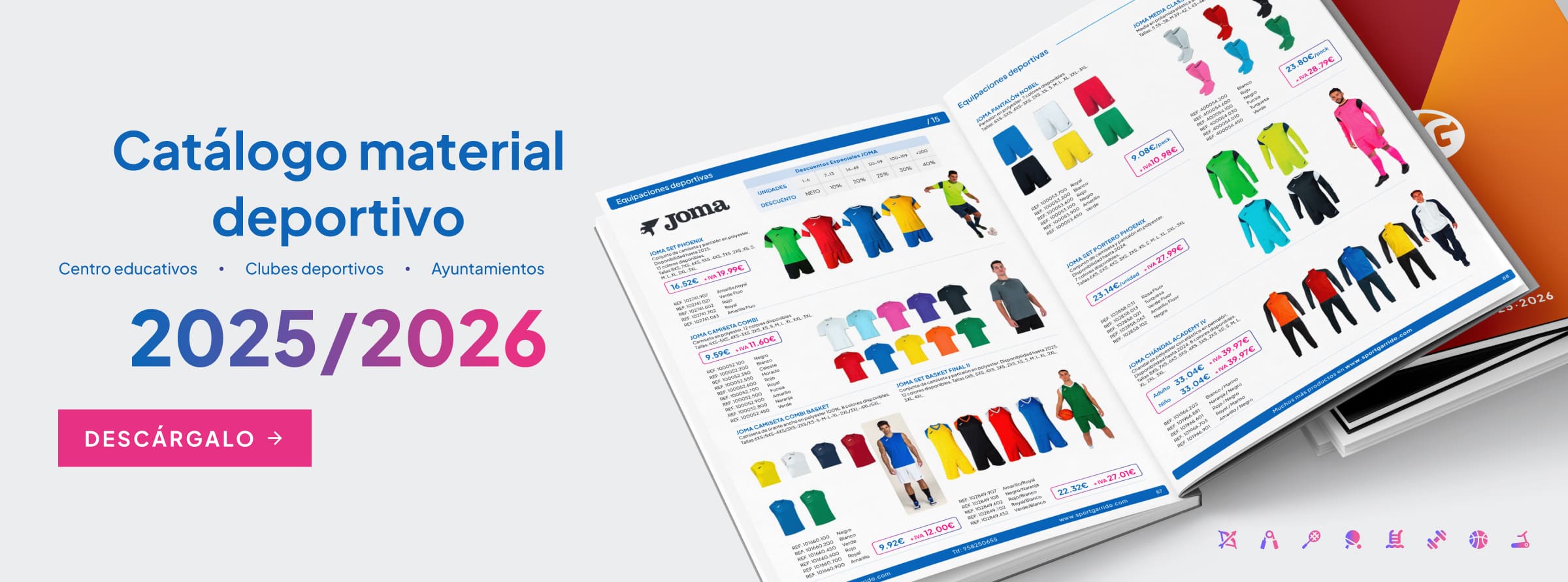 -Material para actividades extraescolares: piscina, danzas, artes marciales, fútbol, baloncesto, y muchos más deportes.
